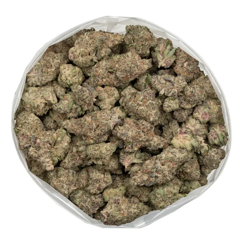 | Appearance | Dense purple and green buds covered in thick trichomes with orange pistils |