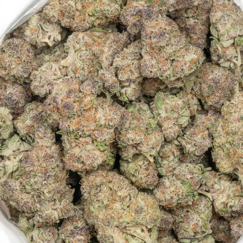 Super Buff Cherry or SB Cherry is a premium AAA+ hybrid that tastes like candies dipped in gas. You spark it, and instantly see why people hunt this strain down. GrowMoreFire Genetics created this fire weed from Super Boof crossed with Tropicana Cherry, this strain leans balanced but hits heavy, landing around 23–26% THC. Tight lime buds show streaks of purple and bright orange hairs, all coated with frosty trichomes that hint at how sticky it gets. The first whiff of Super Buff Cherry brings loud candied fruit mixed with citrus peel and a bit of earth. Myrcene lays down a smooth fruity base, caryophyllene adds a gassy edge, and limonene keeps it refreshing and upbeat. The smoke is delicious like sour candy with creamy diesel underneath.